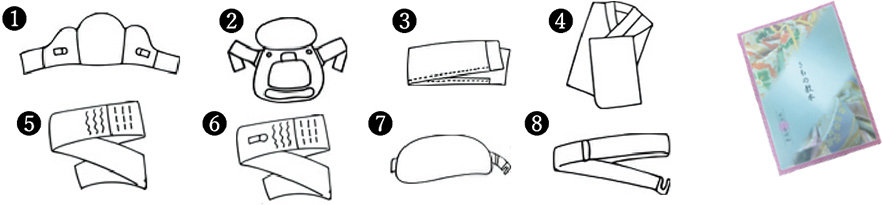 小物教材等お持ちでなくても安心して学べます。授業に必要な教材小物は8点そして教本・普段着用に洗えるきものをプレゼントいたします。更に専門的な教材は無料で貸し出しをいたしますので、何もなくても安心して学んで頂けます。