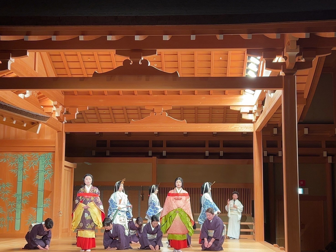 会場には、551名にご来場いただき、第一部では武田富枝学長の解説で王朝装束の着装実演をご覧いただき、第二部では、大変珍しい夏の束帯・直衣を披露いたしました。